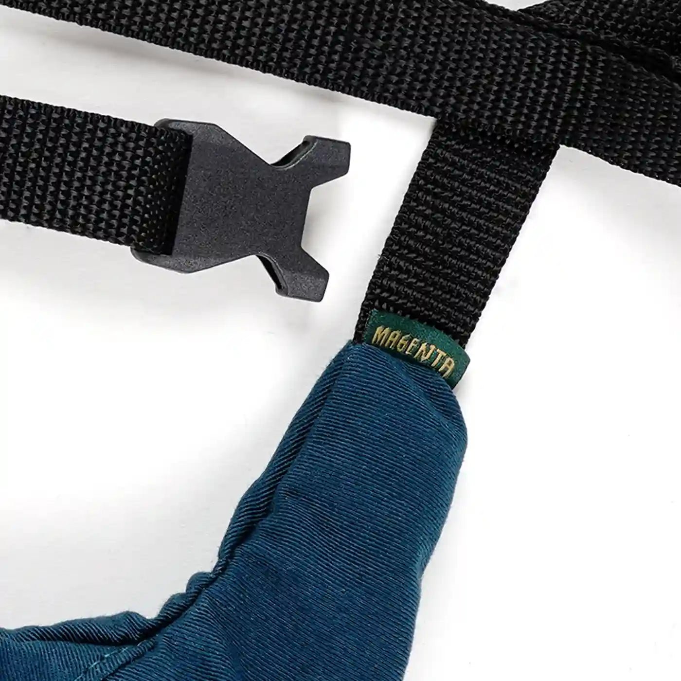 Stufenlos verstellbarer Gurt mit Clip Verschluss.