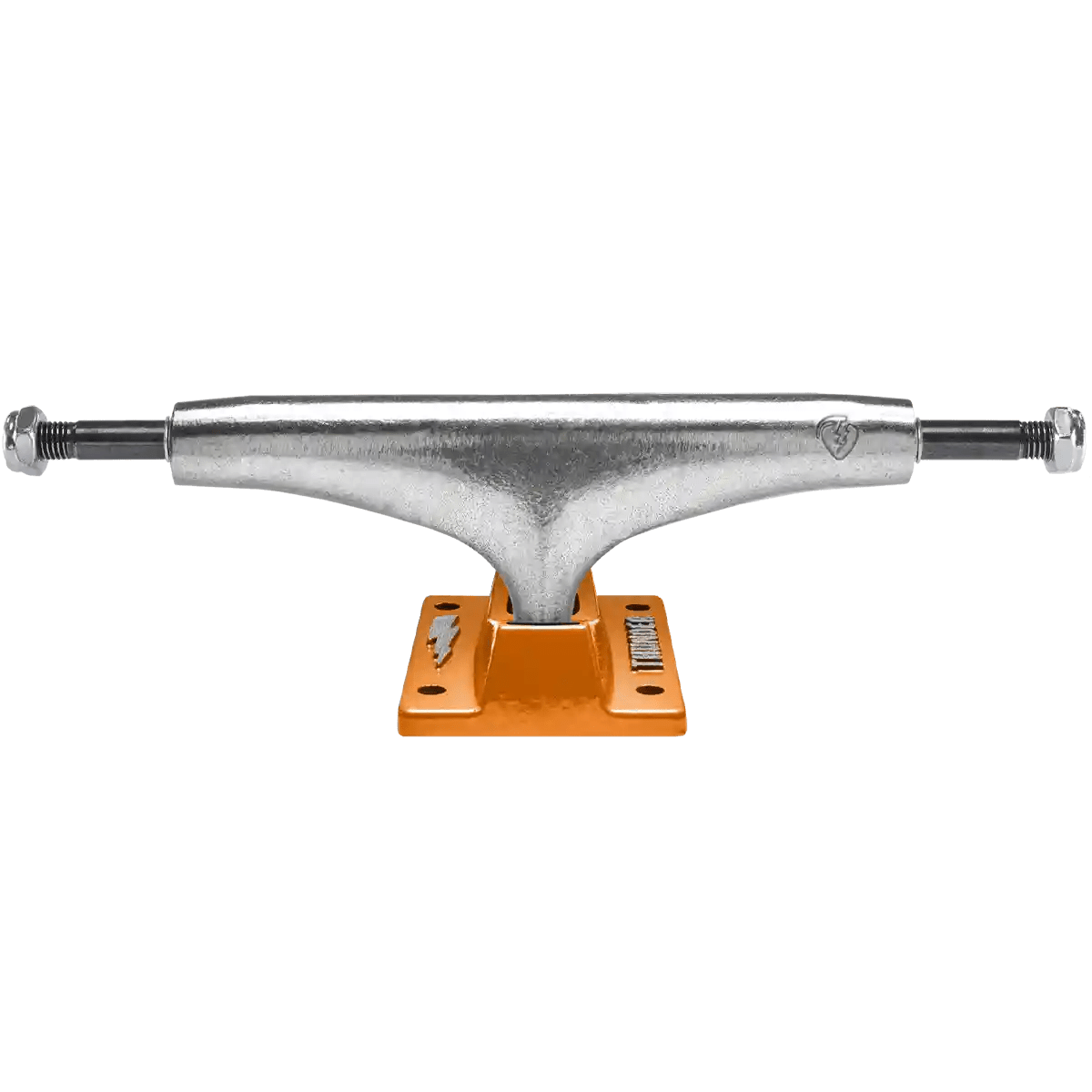Die Stamped eine Standard Thunder Achse mit Orange lackierter Baseplate und poliertem Hanger mit Thunder Grenade Logo