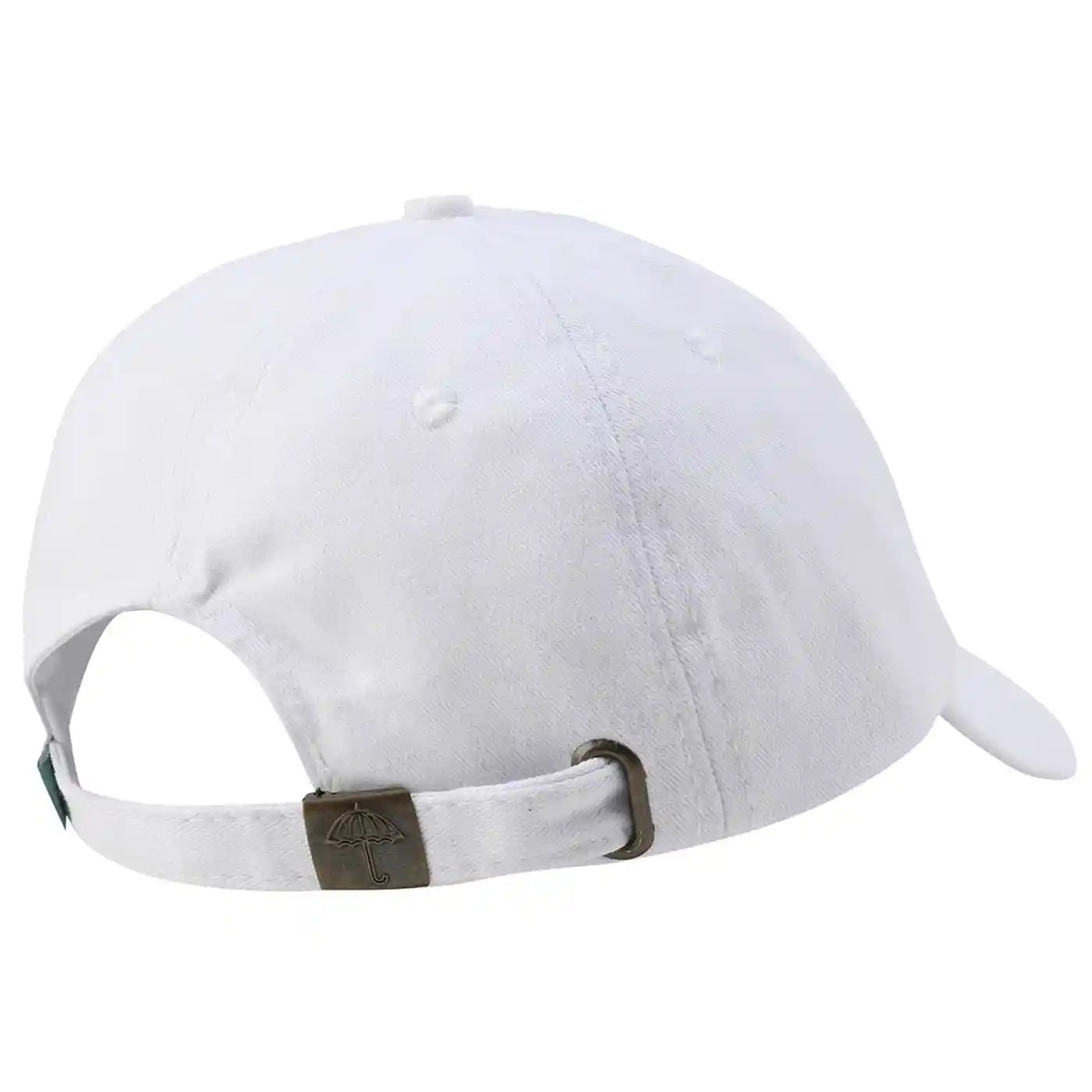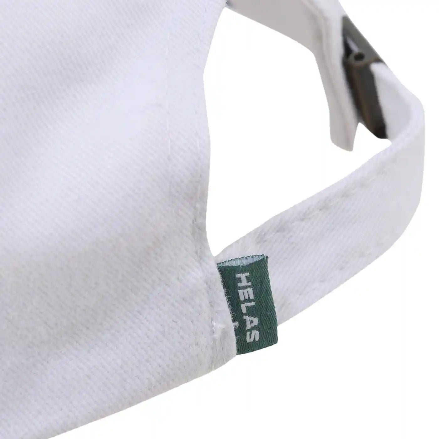 Adjustable strap back closure with Hélas Umbrella logo.