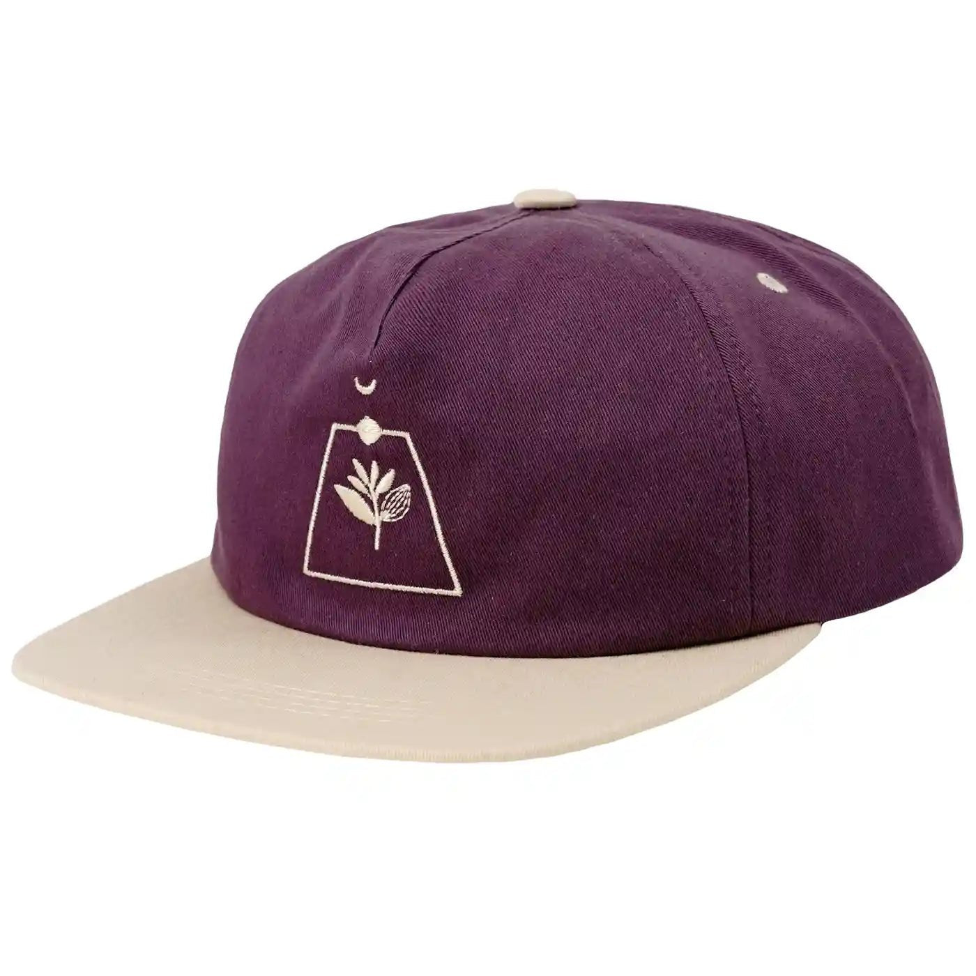 The Odyssey is an unstructured cap from Magenta Skateboards with an adjustable snap closure.