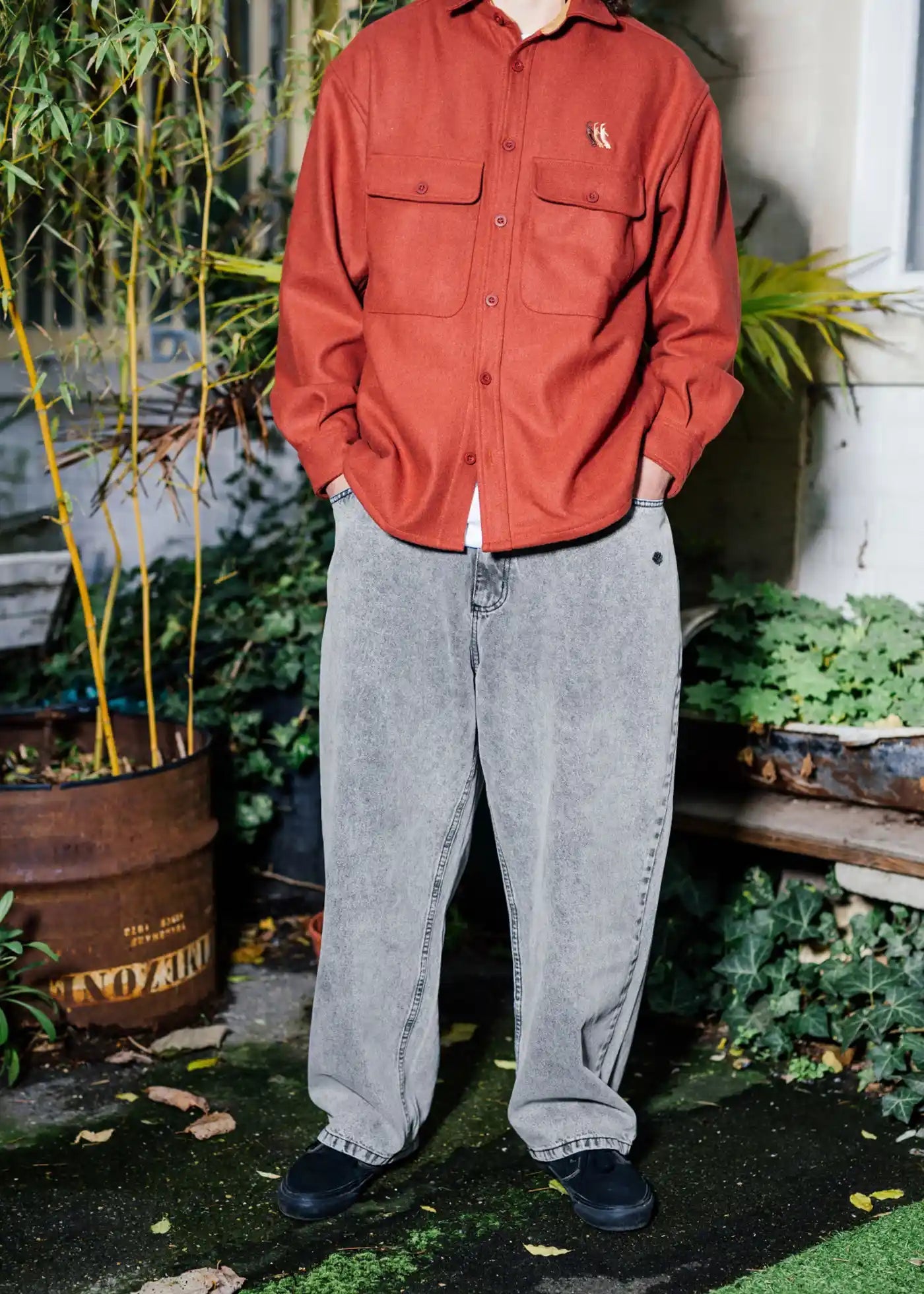 Embroidered Plant logo on the right back pocket.