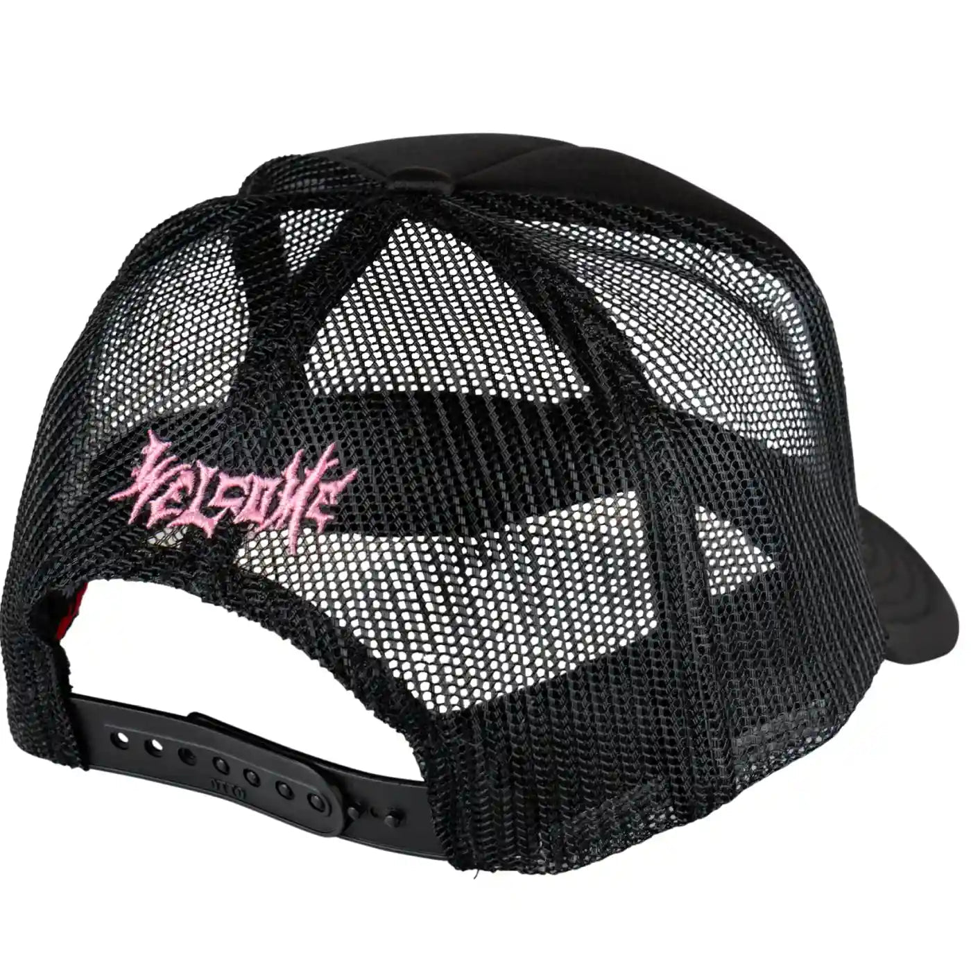 The Innocent is a black trucker style cap from Welcome Skateboards.