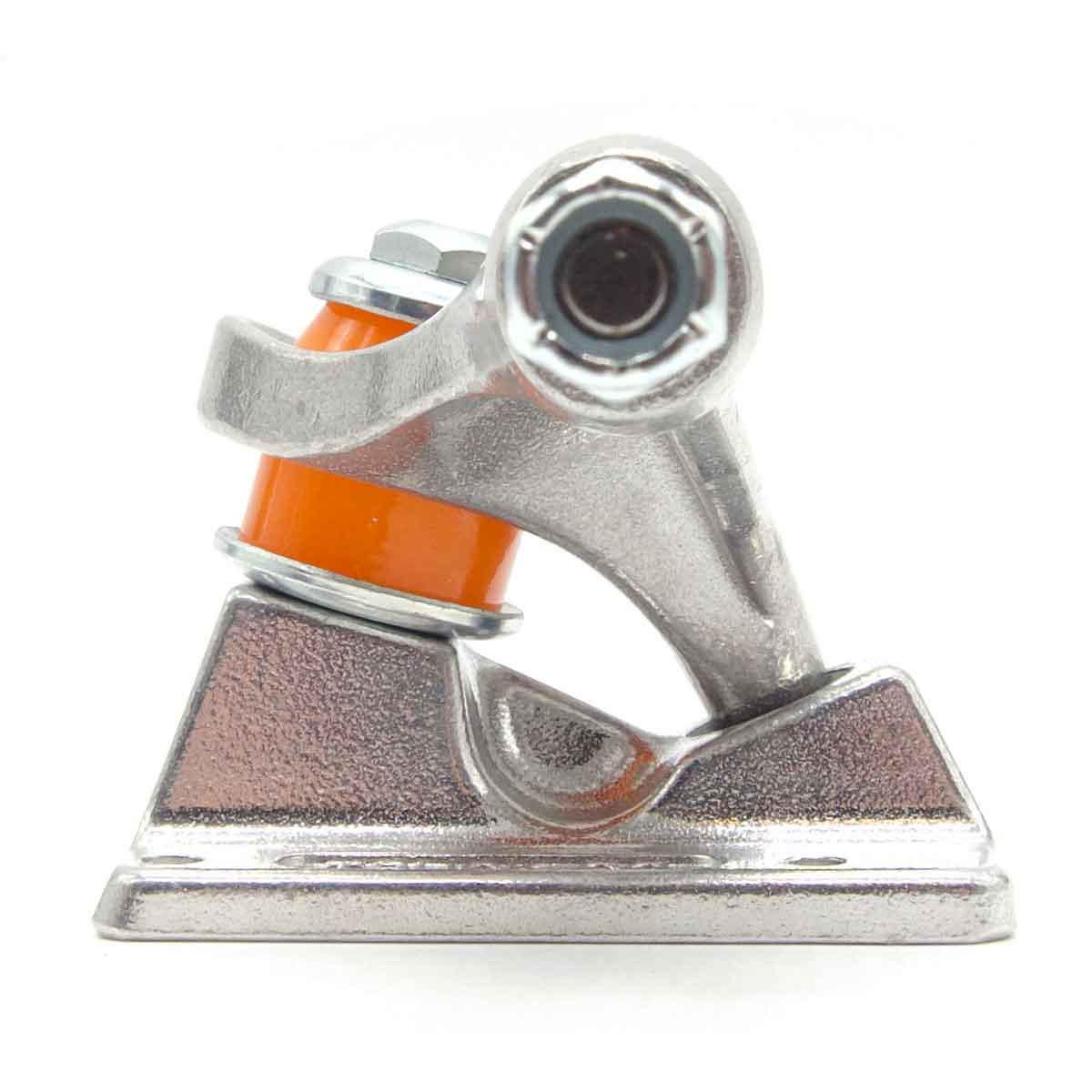 DANGER! Les essieux sont vendus à l'unité. Pour une paire d'essieux, veuillez choisir deux pièces. Les Mids sont la version légèrement inférieure des Independent Trucks. Les Indy Mids mesurent 52 mm de haut, 3 mm de moins que les trucks Indy standard. Les trucks intermédiaires vous rapprochent du sol, vous donnant un peu plus de contrôle mais au prix d'un peu de pop. Grâce à la nouvelle conception avec le pivot d'attelage inversé, le Mid a le comportement de direction particulièrement bon qui représente l'indépendance et grâce au pivot d'attelage légèrement plus court avec la tête plate, il ne gêne pas les moutures forgeronnes et faibles. Les médiums polis ont une plaque de base argentée polie avec un cintre argenté poli, des bagues moyennes orange et des écrous argentés. Plaque de base et cintre en aluminium 356 T6 stable, axe d'axe en acier chromoly 4140, pivot d'attelage stable de grade 8. Les 144 conviennent mieux aux ponts de 8,125 à 8,375 pouces de large. Poids 400 grammes, largeur du cintre : 144 millimètres, axe d'axe 8,25 pouces